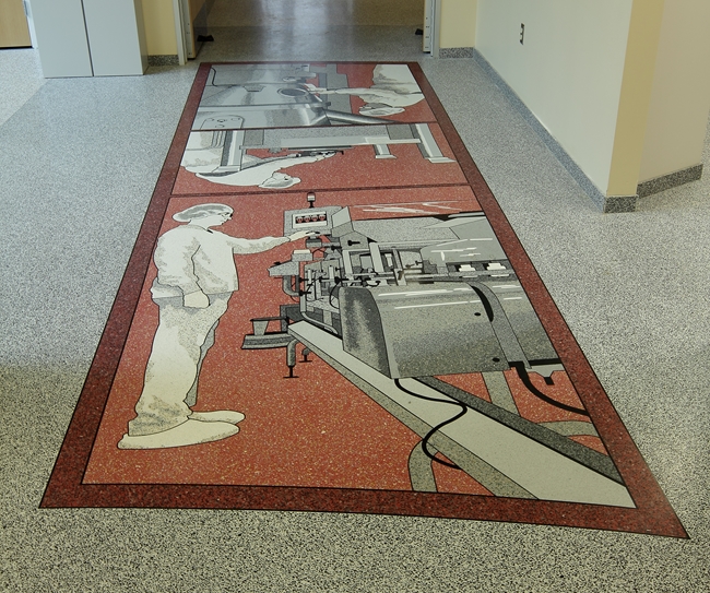 Terrazo collage featuring Unitherians at work at UT’s co-headquarters in Research Triangle Park, N.C.